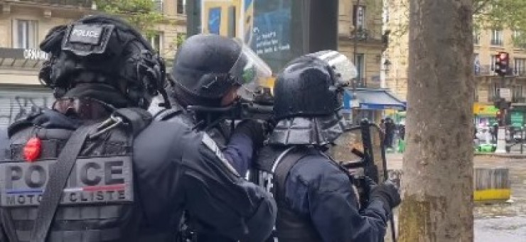 Участники несанкционированной акции в поддержку Палестины в Париже начали бросать в силовиков бутылки и петарды, в ответ полиция применила водометы, слезоточивый газ и резиновые пули,