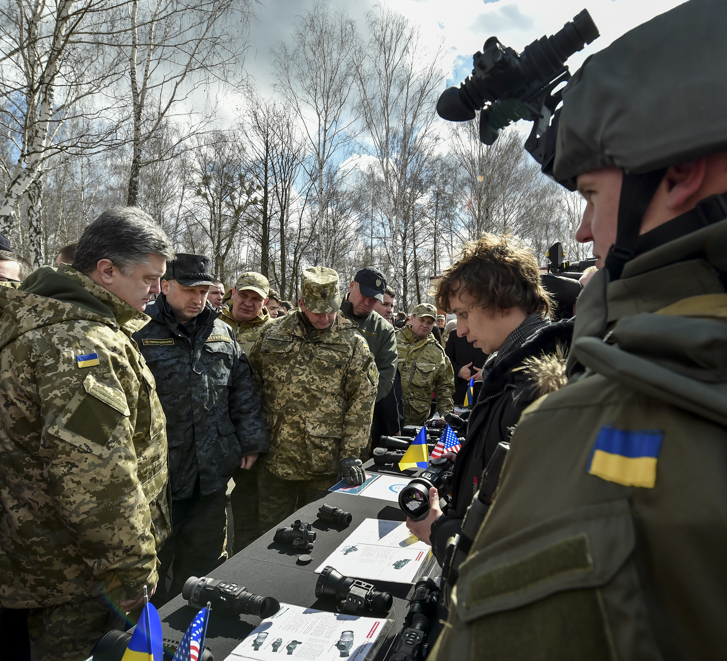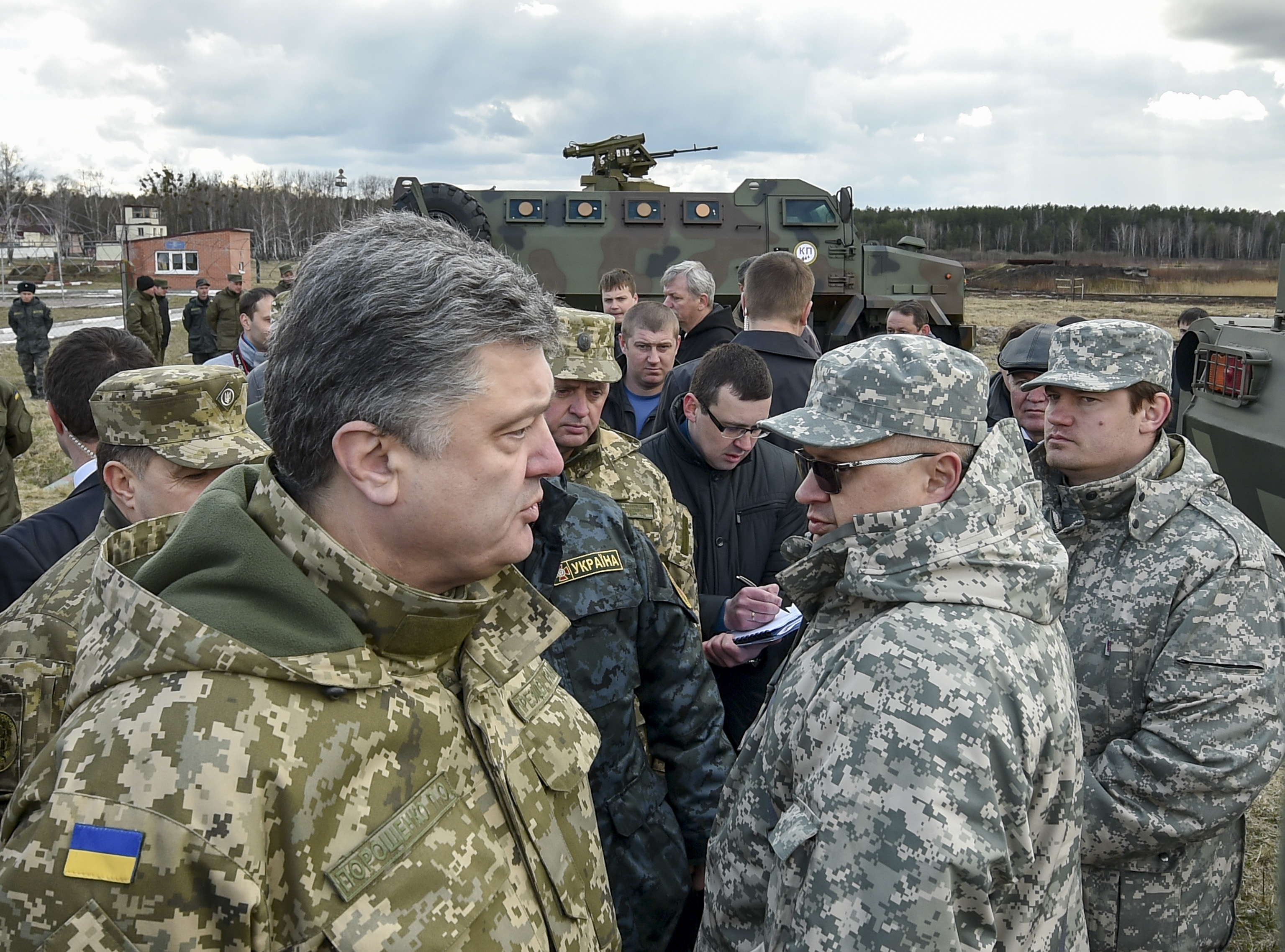 Президент Украины Петр Порошенко вместе с премьер-министром Арсением Яценюком, секретарем СНБО Александром Турчиновым и руководителями силовых ведомств сегодня посетили учебный центр Национальной гвардии, где осмотрел новейшие образцы вооружения и военной техники отечественного производства, передает корреспондент Tengrinews.kz.
