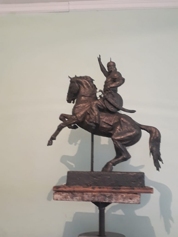 "Ескерткішті толық дайындауға эскизінен бастап 3-4 ай уақыт керек. Аттың тұяғынан батырдың қол ұшына дейінгі биіктігі 5,80 метр болады. Ескерткіш қоладан жасалады. Астыңғы тұғыры бетоннан құйылады", - дейді ол.