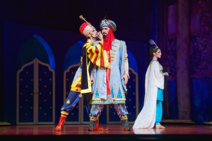 В партии утонченной восточной красавицы Зобеиды – молодая перспективная солистка театра Анастасия Заклинская. Шахриара и Шахезмана представят обладатели прекрасного актерского мастерства Жанибек Иманкулов и Ильдар Шакирзянов. В роли главного евнуха – харизматичный танцовщик Олжас Маханбеталиев. Одалиски – Молдир Шакимова, Аделина Тулепова, Еркежан Жунусова, Марико Китамура, Сэйка Тоносаки, Назира Заетова. В гала-концерте наряду с казахстанскими артистами примут участие премьер Королевского театра "Ковент-Гарден" Вадим Мунтагиров и Дарья Климентова, а также самые яркие звезды мирового балета: Юлия Махалина (Мариинский театр), Татьяна Мельник (Государственный Венгерский оперный театр), Элеонора Севенард (Большой театр России), Бруклин Мак (Вашингтонский балет), Ксандер Париш (Мариинский театр), Денис Родькин (Большой театр России) и другие.