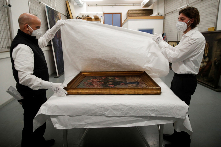 По информации издания, картина с изображением голубой вазы, наполненной розовыми цветами, - одно из 30 произведений искусства, которые разыскивает семья Майер.