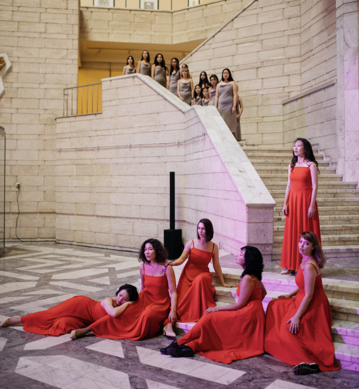 Большое впечатление на гостей мероприятия произвел иммерсивный театральный перформанс "Мне пять тысяч лет". В нем принял участие сборный хор из 21 девушки разных возрастов – они объединились специально для мероприятия. "Мы рассказываем историю женщин, которым пять тысяч лет, и сильнее их – нас – нет ничего. Мы в силах диктовать нашу историю и направлять нашу судьбу по пути, который выбираем мы сами. В постановке было закодировано много посланий, которые, я надеюсь, зритель прочувствовал и услышал", – говорит Татьяна Ким, режиссер постановки.
