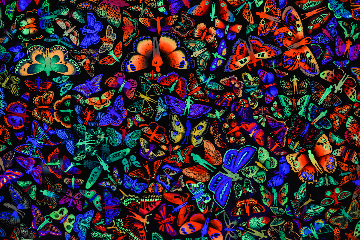 Еще одна работа художника - "Обратная сторона полуночи", которая дала название выставке, также поражает воображение посетителей. Для показа инсталляции смонтирована специальная черная комната, в центр которой помещен круг, состоящий из 2 тысяч бабочек с человеческими телами и различных диковинных насекомых, раскрашенных флуоресцентными (светящимися) красками. Под ультрафиолетовыми лучами этот волшебный круг словно оживает.