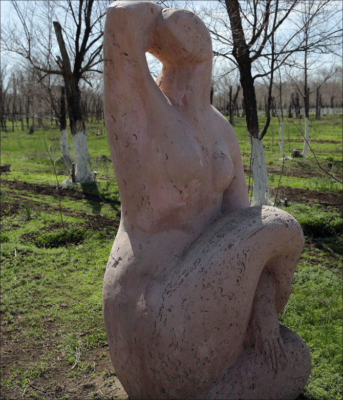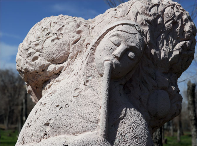 Оказалось, что большинство "неприличных" скульптур в городе установлены в парке в 11-м микрорайоне. Это мужики в одних трусах, флейтистка, эротично играющая на дудочке, лысый дядька с блаженным лицом, держащий руках непонятное нечто, и две голые красавицы из ракушечника.