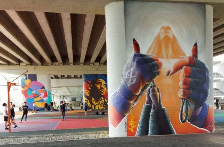 "Также там нарисовали граффити. Ранее на одной из стен появилось граффити с изображением баскетболиста Коби Брайанта, теперь на другой стене изображен боксер Геннадий Головкин", - рассказала пресс-секретарь акимата Нур-Султана Акмарал Олжабаева.