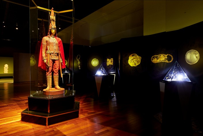 Представленные на выставке экспонаты являются свидетелями истории степной цивилизации, расцвета и великих побед империй. Наследие первых степных государств раннежелезного века - одежда иссыкского воина с золотыми украшениями в зверином стиле - является центральным экспонатом выставки. Также на выставке были представлены находки из курганов Таксай и Аралтобе расположенных в Западном Казахстане, украшения одежды вождя из кургана Талды-2, расположенного в Сарыарке, уникальные артефакты конской сбруи из Берельских курганов казахского Алтая. Кроме того, через представленные предметы традиционного декоративно-прикладного искусства казахов зарубежной аудитории были показаны преемственность традиций и искусства народов, населявших территорию Казахстана, и глубокое семантическое значение каждого экспоната.