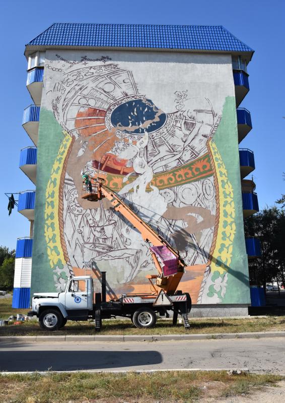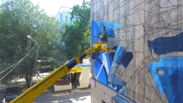 Создавать картины на стенах домов вызвались стрит-арт-художники не только из Казахстана, но и Кыргызстана, России и Украины. Рисунки появятся на многоэтажках каждого района города. Всего организаторы планируют разукрасить порядка 13 домов. Пока полностью готовы пять работ.