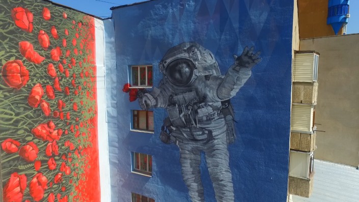 Команда из Кыргызстана решила порадовать алматинцев огромным изображением космонавта и макового поля. Эта композиция пришлась по вкусу алматинцам, рисунком они активно делятся в социальных сетях.