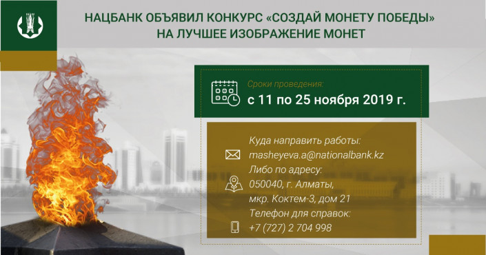 Национальный Банк Казахстана объявляет открытый конкурс на лучшее изображение монет на тему "75 лет Победе", передает Tengrinews.kz.
