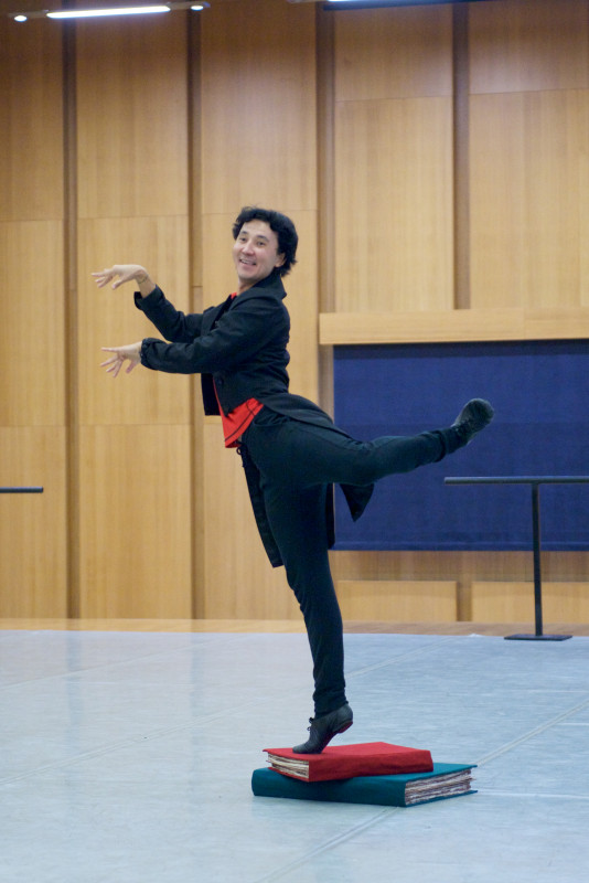 Выходить на сцену в партии Коппелиуса после таких грандов, как Ролан Пети и Луиджи Бонино, - ответственность большая и в то же время риск. Нужно представить свою собственную интерпретацию. Какой она будет у Рустема Сейтбекова, мы узнаем только на премьере, а пока артист оттачивает мастерство в зале.