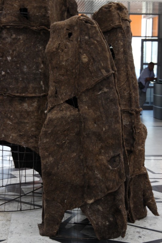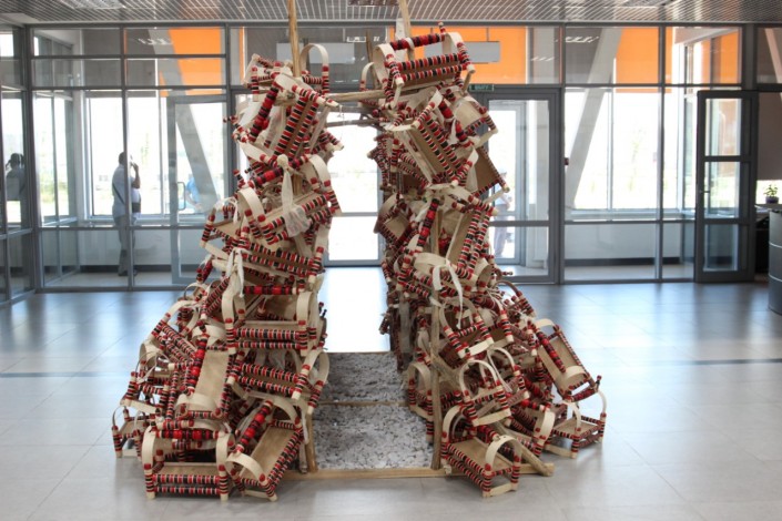 Далее зрители смогут увидеть "Подушки" от Сауле Дюсенбиной. Это множество воздушных подушек, на которых изображены батыры, животные. Зефирная экспозиция, вытянутая с самого потолка до пола, повествует о такой проблеме, как гибель животных.