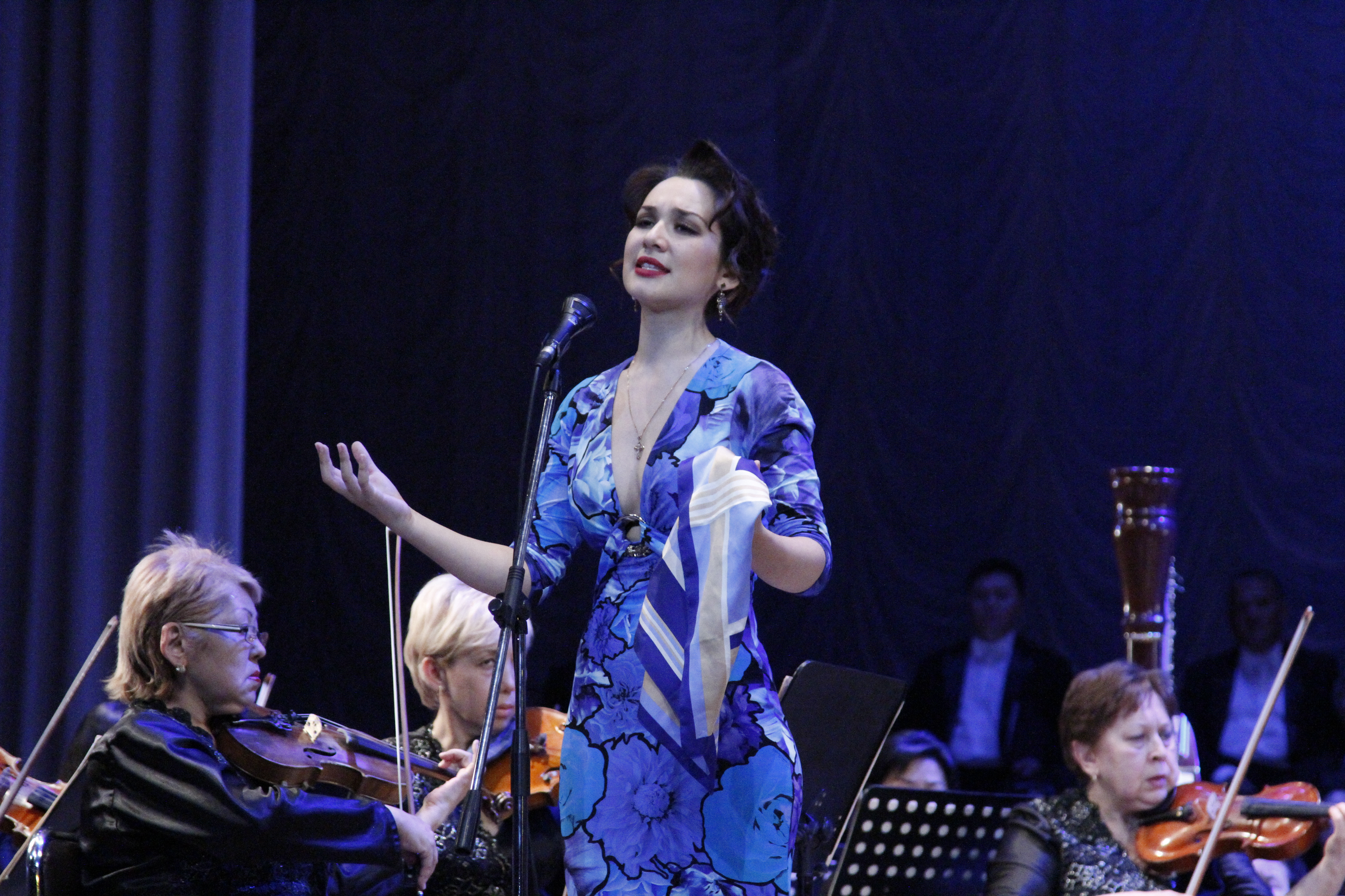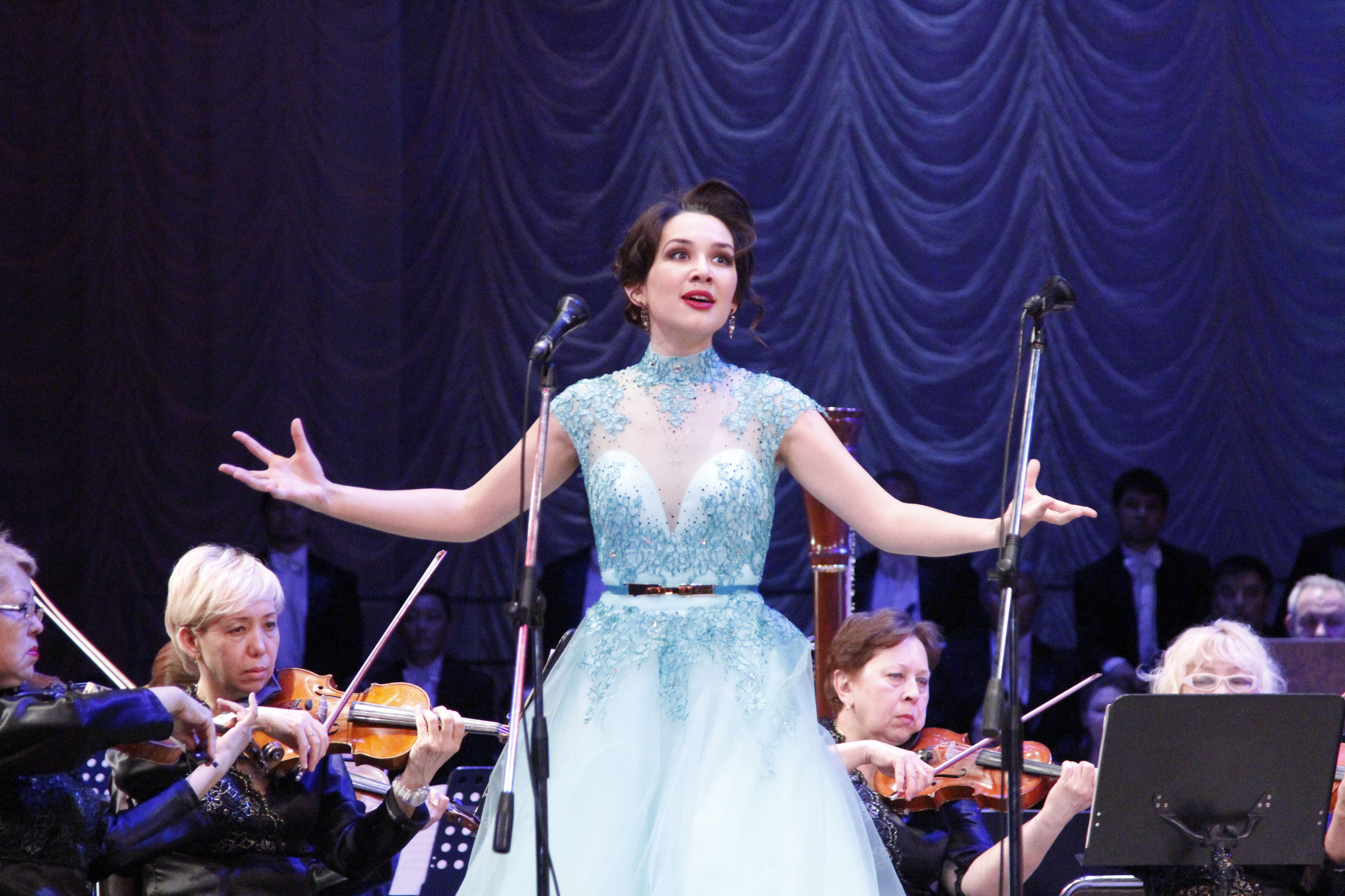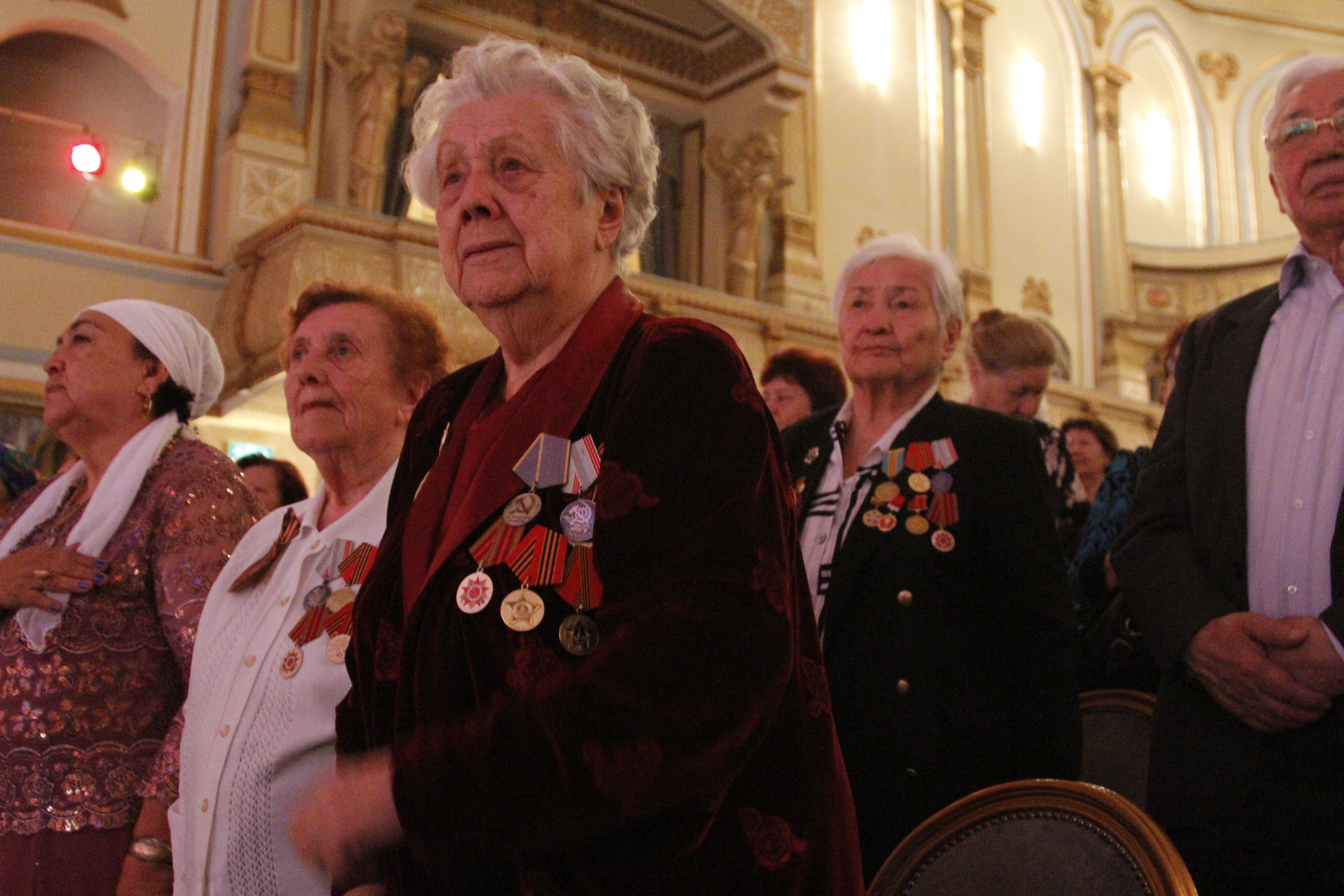 Солистка "Астана Опера" Мария Мудряк выступила для ветеранов в честь 70-летия Победы, передает корреспондент Tengirnews.kz. Бесплатный концерт прошел в Алматы в Казахском государственном академическом театре оперы и балета имени Абая. В нем также приняли участие ведущие солисты, оркестр и хор театра. Всего в зале Казахского государственного академического театра оперы и балета имени Абая собрались более 700 человек.