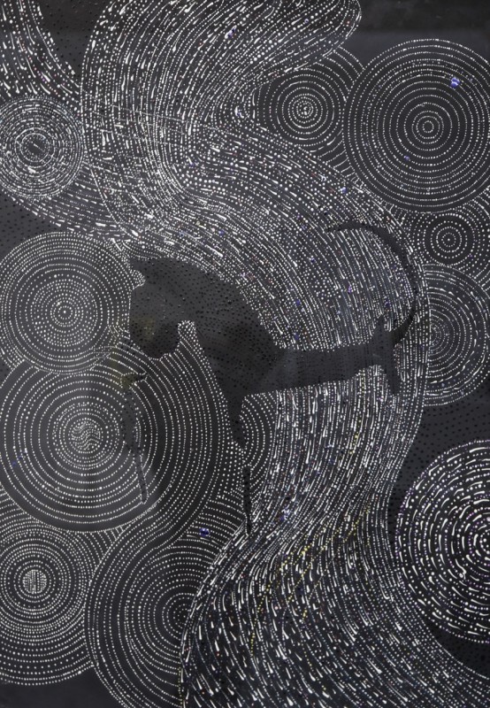 "Миллионы точек рассказывают историю моего мира. Когда я поднимаю взгляд в ночное небо, вижу миллионы звезд, и все они светят своим светом, и этот свет доходит до меня. Я принимаю этот свет. Вслед за этим начинаю наносить свои точки на бумагу. Точка позволяет мне отобразить процесс жизни, в котором я нахожусь", - объясняет он.
