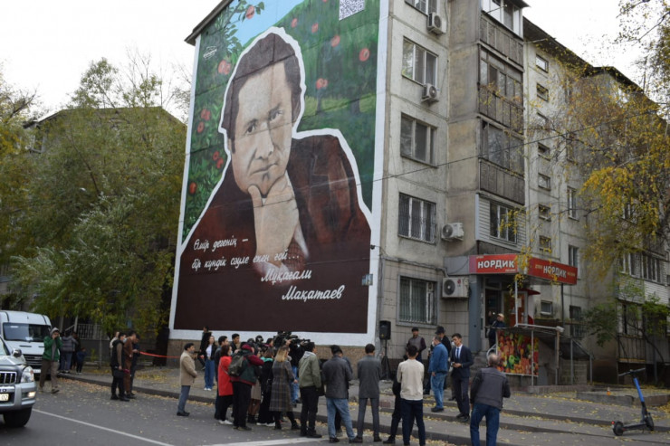 Мурал в честь Мукагали Макатаева появился в Алматы