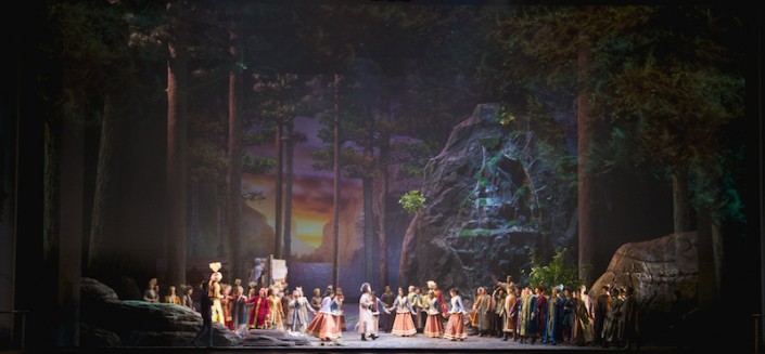 Отдельным персонажем можно рассматривать и народ, который на протяжении всего спектакля выражает свое мнение. Красочные и выразительные танцевально-хоровые сцены, как раз и создающие образ народа, нашли горячий отклик у публики.