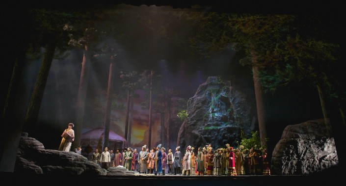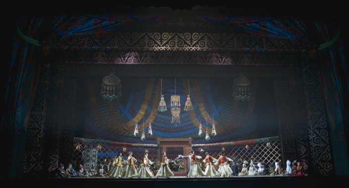 Шедевр национального искусства предстал в новом прочтении режиссера-постановщика Асхата Маемирова и режиссера-консультанта Михаила Панджавидзе. Публике обещали зрелищный спектакль, и постановочная группа свое обещание сдержала.