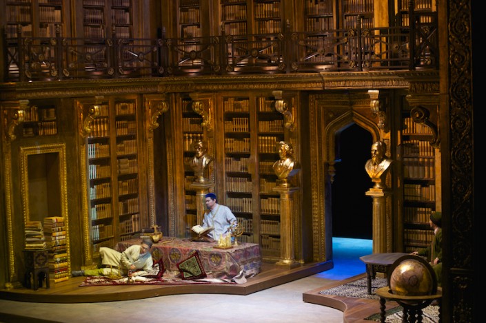 Без сомнения, зрители не останутся равнодушными к работе над оперой замечательного творческого дуэта: выдающегося сценографа современности Эцио Фриджерио и художника по костюмам - лауреата премии "Оскар" Франки Скуарчапино.  Уникальная сценография раскрывает многогранный мир поэта: в кабинете Абая итальянцы увидят блистающую золотом книг библиотеку, глобус, армилляр… А двери кабинета распахнутся прямо на глазах изумленных зрителей. Использование в финальной сцене 3D-технологий срабатывает точно, вызывая бурю эмоций.