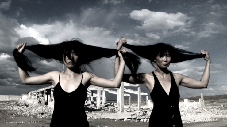 В своих видео- и фотоработах Менлибаева исследует болезненную историю Центральной Азии. В ее видео Exodus (2009) женские духи, одетые в черное, размахивают волосами на фоне бетонных руин бывших концлагерей, затем они сменяются кадрами с большим количеством людей, пакующих свои юрты и собирающихся в путь. Это напоминает не только миф о Моисее, выводящем свой народ из Египта, но также и нынешний миграционный кризис.