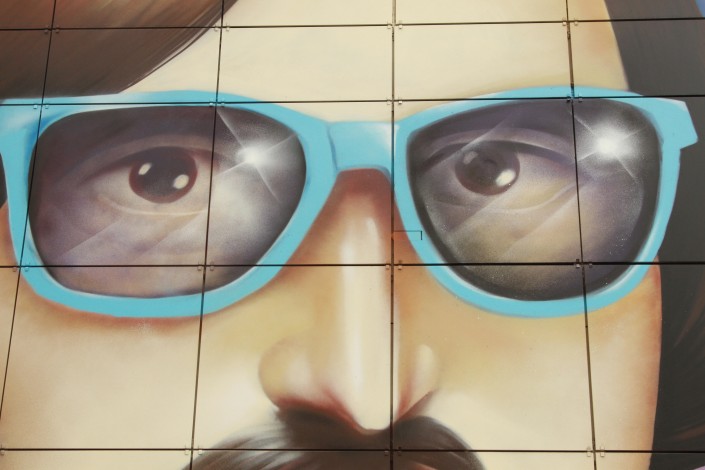 "Я сам пришел к магазину с этой идеей, - говорит автор граффити Andrew Repas. - Я заканчивал факультет дизайна и всегда хотел заниматься эстетизацией городской среды: вместо серых стен украшать город. Эту серую стену я заприметил давно - живу недалеко, часто прохожу мимо. И вот пришла идея: Гоголь на Гоголя, как раз на стене книжного магазина. Я пришел к руководству "Меломана" с тремя-четырьмя эскизами - они утвердили, я начал делать. От момента задумки прошел примерно месяц, с начала работ - неделя: с учетом погодных условий, как раз выпало на период дождей и ветра, рисовал с вышки - было небезопасно".