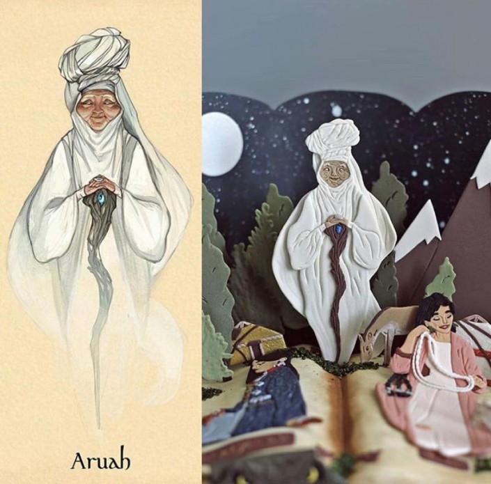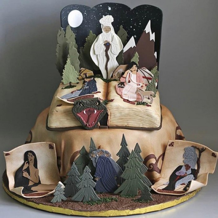 "От себя совсем немного: например, пери (мифические существа в виде прекрасных девушек) живут высоко в горах в золотых и серебряных юртах, пасут куланов. Это уже мои детали к дополнению образа, которые я добавила на торт. Но лучше самих иллюстраций никто об этих мифических существах не расскажет. Хотела воплотить эти иллюстрации на торте, и я сделала это", - добавила кондитер.