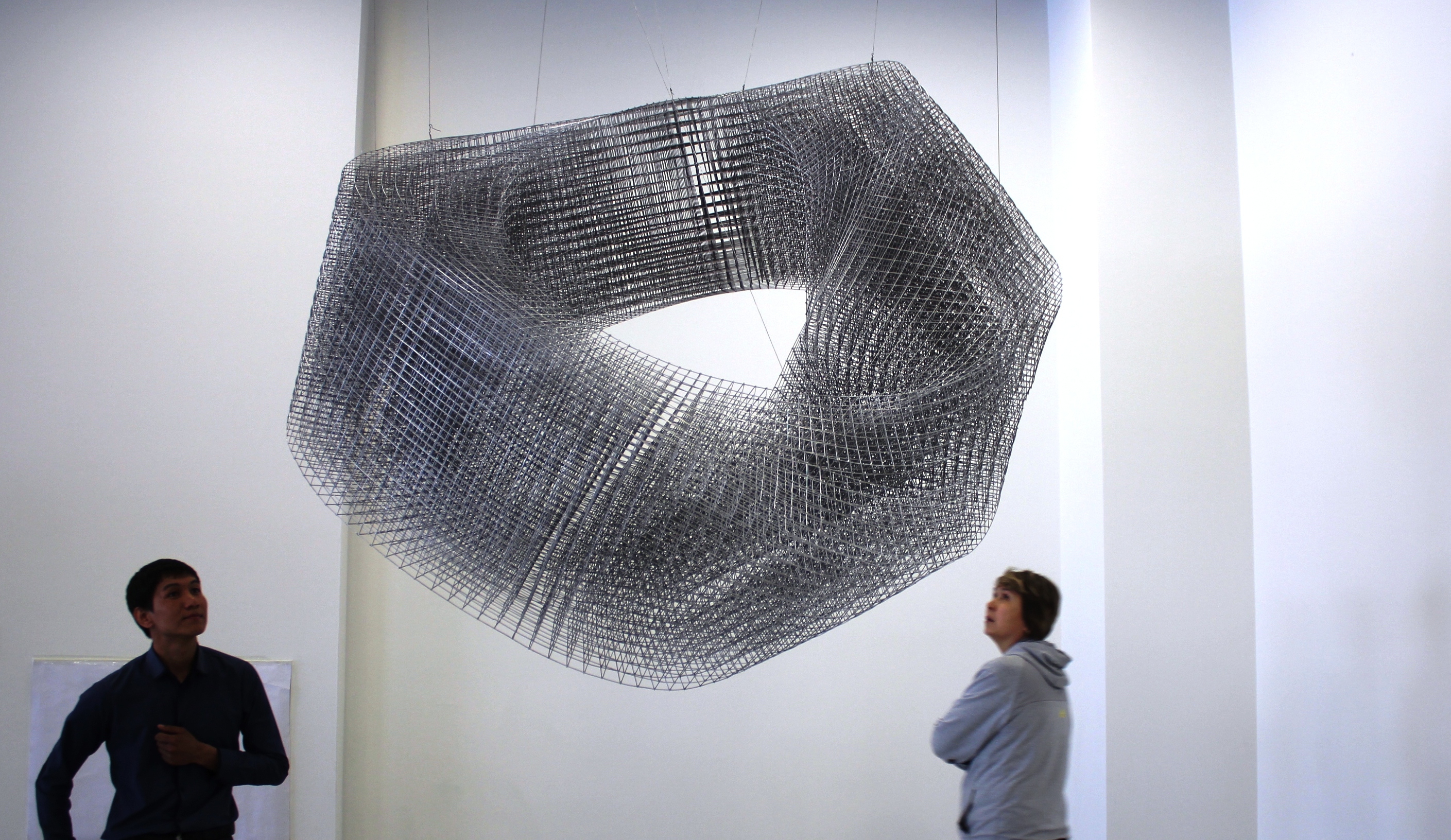 "Эта работа отсылает нас к мифам. Я люблю читать статьи о первобытном мышлении, где люди говорят о реинкарнации. Но вот эта вещь, она чисто математическая, и она не имеет края. Вот человек живет по правой спирали, заболел, на левую втянулся и умер. Затем он переходит по туннелю жизни и смерти в другой мир", - объясняет свою задумку автор.