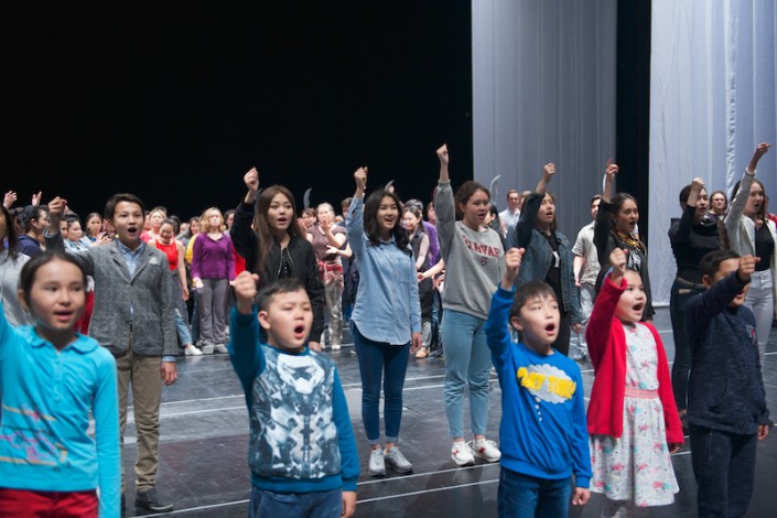 Симфонический оркестр и хор "Астана Опера" под руководством дирижера-постановщика Алана Бурибаева репетировали несколько месяцев, чтобы их звучание было филигранным. Особо важная нагрузка ложится на хор, который имеет в этой опере первостепенную роль. Главный хормейстер "Астана Опера" Заслуженный деятель Казахстана Ержан Даутов оттачивал мастерство не только артистов хора столичного театра, но и артистов Китайского национального оперного театра.