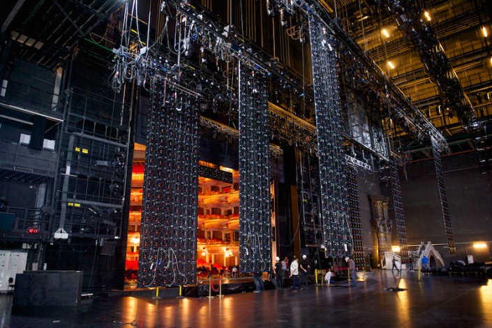 "Впервые на нашей сцене мы будем использовать видеопроекцию на LED-кулисах, которые в течение всего спектакля передвигаются по сцене, и одновременно служат дополнением фронтальной арьер-проекции, представляющей собой экран, ширина которого 24 метра, а высота 15 метров. В первом акте на удивление публики пойдет дождь, причем вода будет абсолютно настоящей. Неповторимую театральную магию создаст уникальное сочетание света и видеоконтента. К слову, свет в этой постановке играет очень большую роль. Кроме прочего, мы построили механизмы для подъема