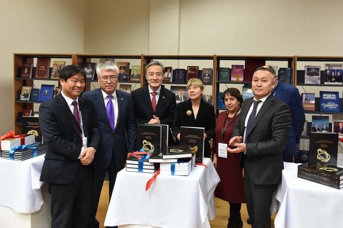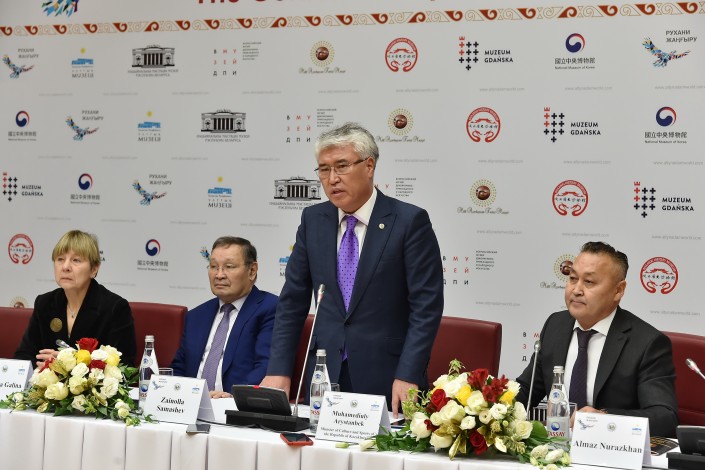 В пресс-конференции приняли участие министр культуры и спорта РК Арыстанбек Мухамедиулы; исполняющий обязанности директора Национального музея РК А.Ш. Нуразхан; заместитель директора Национального музея истории Азербайджана, доктор исторических наук М. Зейналова; главный советник Всероссийского музея декоративно-прикладного и народного искусства Г.Б. Андреева; заместитель генерального директора Национального художественного музея Беларуси С.В. Вечер; ректор, профессор Северо-Западного политехнического университета КНР Ван Чжинсун; директор департамента Азиатского искусства Национального музея Кореи Чжой Сеон Джу.