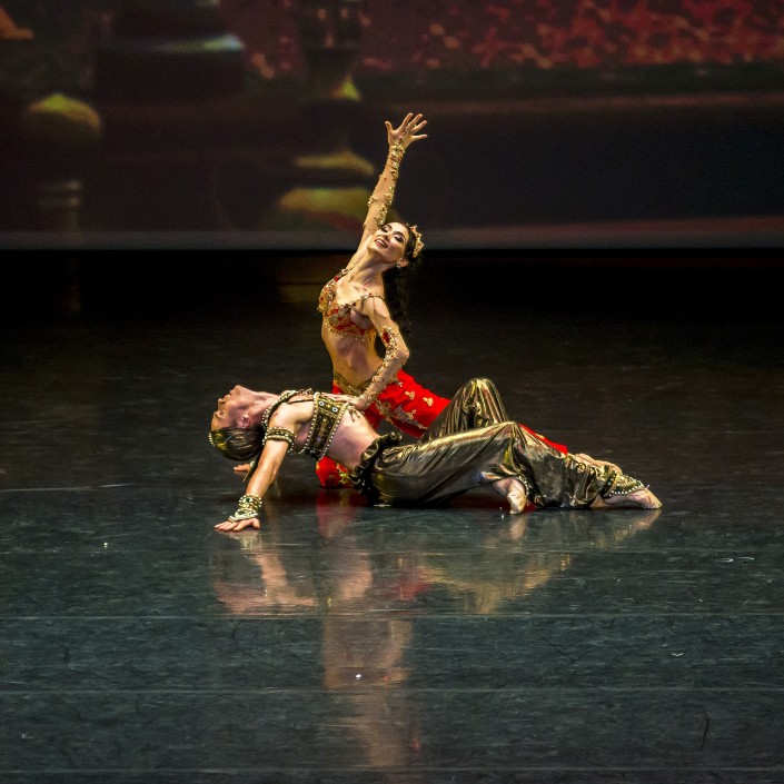 Классический блок представляли па-де-де из балетов "Жизель", "Лебединое озеро", "Корсар" и "Дон Кихот", "Классическое па-де-де" Обера, адажио из балета Фокина "Шехерезада" и па-де-де из спектакля "Дочь Фараона" в постановке Пьера Лакотта.
