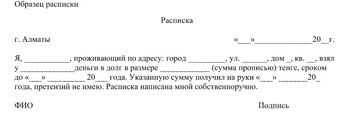 "Документом, подтверждающим данный факт, может служить обыкновенная расписка: "Я, ФИО, деньги в сумме такой-то получил. Обязуюсь вернуть в срок до такого-то. Подпись, дата". А так как подобный документ не всегда имеется, то суды периодически отказывают в исках. Можно заключить и договор займа, но в данном случае желательно также взять расписку о том, что лицо деньги фактически получило", - пояснил он.