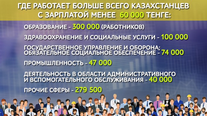 В каких сферах работает наибольшее число казахстанцев, получающих заработную плату менее 60 тысяч тенге