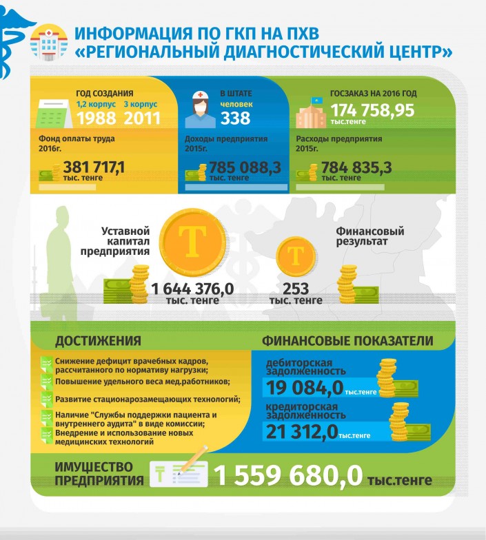 В "Региональном диагностическом центре" ведется консультативный прием по 19 специальностям, наряду с этим применяются 243 диагностические методики и выполняются 35 лечебных манипуляций.