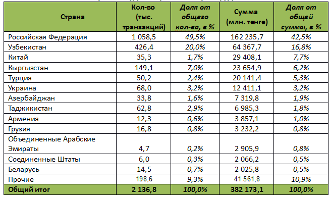 Основным источником переводов денег в Казахстан является Российская Федерация.