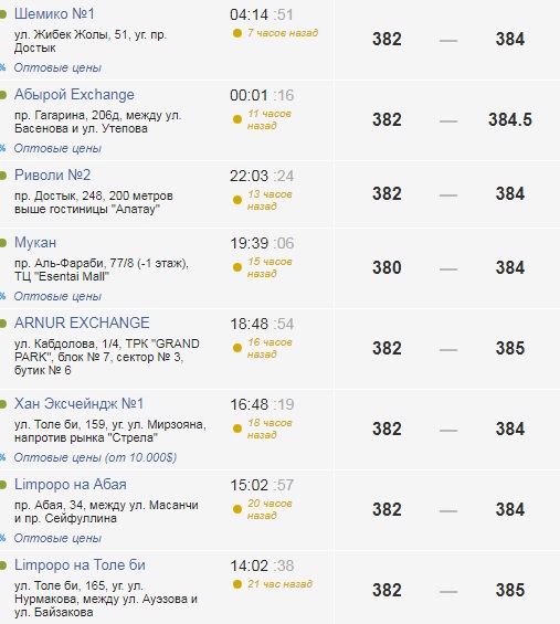 В обменниках доллар пятого января продают по 383,5-385 тенге.