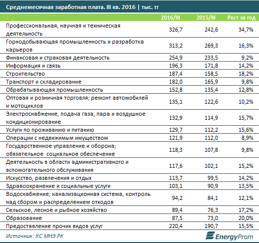 Интеллектуальный труд в Казахстане ценится выше всего. Среднемесячная зарплата научных работников, разработчиков и аналитиков достигла 326,7 тысячи тенге, увеличившись на треть по сравнению с показателями 2015 года, сообщается в исследовании Energyprom.kz.