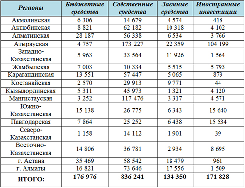 По данным Шурекеновой, лидерами по объему инвестиций в основной капитал за январь-апрель являются Атырауская область (304,5 миллиарда тенге), где удельный вес сотавляет 23 процента, и Мангистауская область (128,6 миллиарда тенге), где удельный вес сотавляет 10 процентов. "Как показывает мировая практика, территориальные различия естественны и объективны. Формируя условия межрегиональной конкуренции, территориальные различия способствуют повышению эффективности размещения производства, оптимизируют структуру расселения и рынков труда", - сказала она.