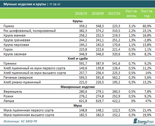 Среди круп за сентябрь заметнее всего подорожали пшено (на 3,1 процента к августу) и рис (плюс 2,2 процента).