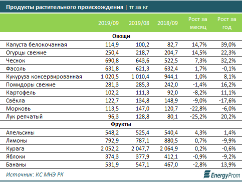 Аналитики отмечают, что в этом году сезон дешевых свежих овощей закончился относительно рано. В сентябре цены на капусту и огурцы выросли по сравнению с августом почти на 15 процентов. Чеснок подорожал на 7,3 процента, фасоль - на 1,7 процента.