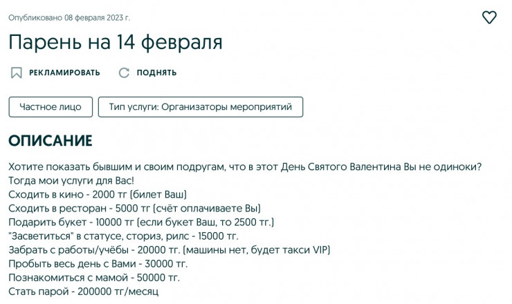Отметим, что не все услуги реальны, большинство из объявлений - шуточные. Тем не менее есть и мужчины, которые действительно этим зарабатывают. Они пишут свои точные характеристики, хобби и увлечения, а также указывают возраст и внешние данные.