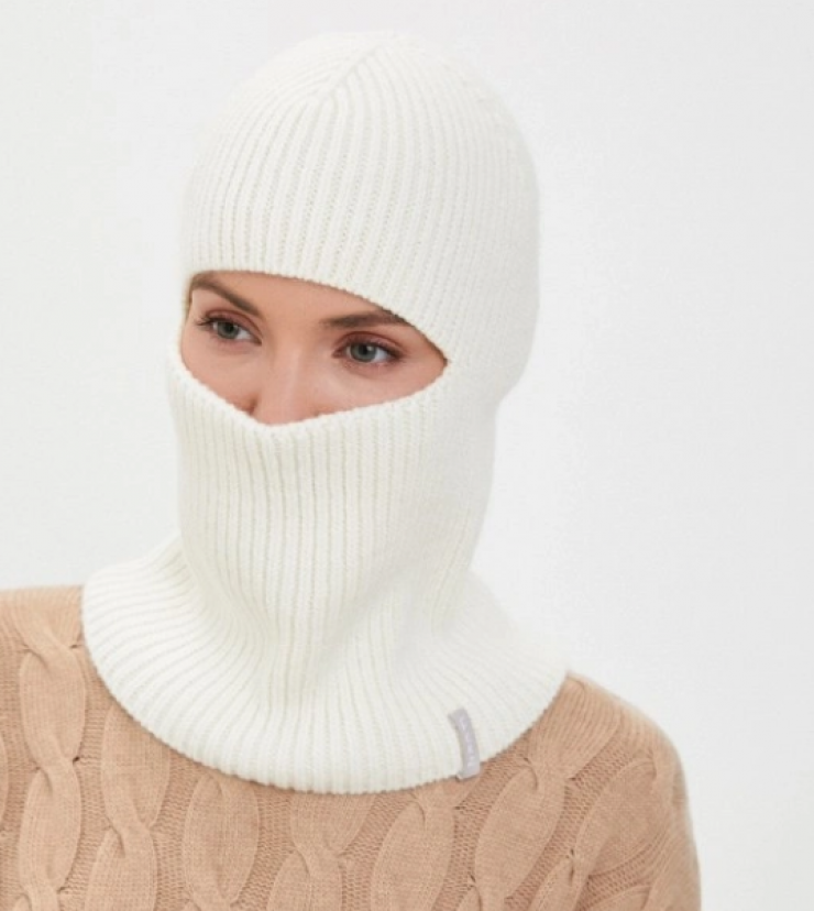 Что касается балаклавы, то похожая модель представлена у бренда Ferz. Шерстяной головной убор в светлом цвете точно добавит стиля к горнолыжному костюму, а также согреет лицо от попутного ветра во время катаний.