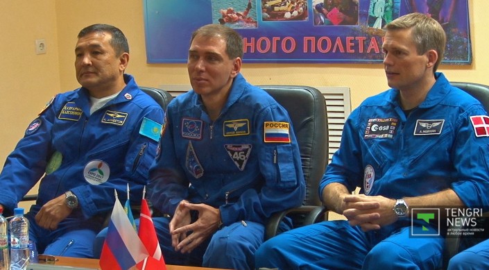 Добавим, что казахстанец также поделился подробностями научной программы, которую ему предстоит выполнить в космосе. "Мне хотелось бы рассказать об одном эксперименте. Казахстанские ученые разработали специальный прибор. Как вы знаете, любой материал, он впитывает излучение, а потом он далее сам уже излучает. Радиационная обстановка на орбите, или радиационный фон, превышает в 200 раз земной, и космонавты во время своего полета, естественно, "берут" какие-то миллизиверты, и вот здесь с меня уже сняли земные фоновые данные, затем на орбите будут сниматься данные. Буду носить с собой дозиметр, и после этого также на земле будут снимать после полета данные. И что самое интересное, не со всего организма, а именно с головного мозга. Далее эксперименты - "взаимодействие" и "контент" - это психологические, по взаимодействию членов экипажа до полета, во время, а также после него. Будет оцениваться их взаимодействие в ограниченном пространстве. Эксперименты "релаксация", "ураган" - это мониторинг земной поверхности, анализ - будут ли случаться какие-то экологические катастрофы", - пояснил космонавт.
