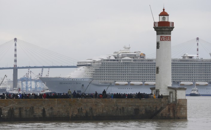 Во французском порту Сен-Назер спущен на воду круизный лайнер "Гармония морей" (Harmony of the Seas), который на сегодняшний день является самым большим в мире пассажирским судном, сообщает The Telegraph.