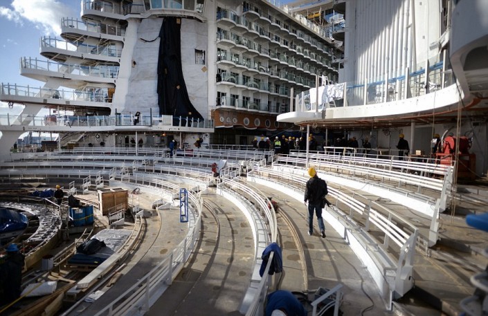 Кораблю, построенному компанией STX France, предстоит трехдневное испытательное плавание. На его борту нет пассажиров, однако присутствуют 500 членов экипажа. После ходовых испытаний (примерно в середине мая этого года) судно стоимостью в один миллиард евро передадут заказчику - американской компании Royal Carribean International.