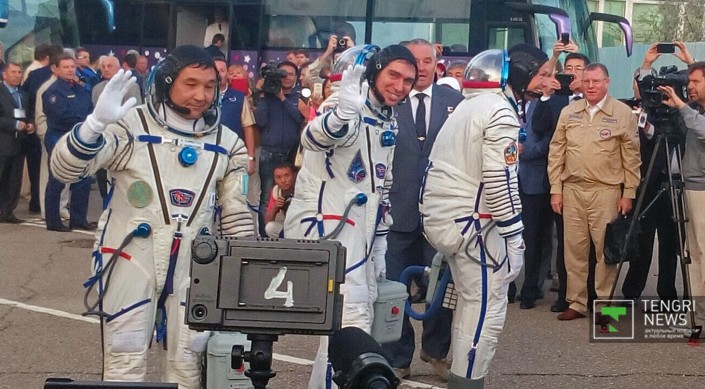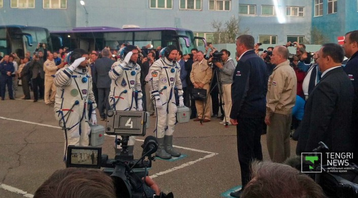 Космонавт Айдын Аимбетов доложил о готовности к полету Айдын Аимбетов перед стартом корабля "Союз". © ria.ru