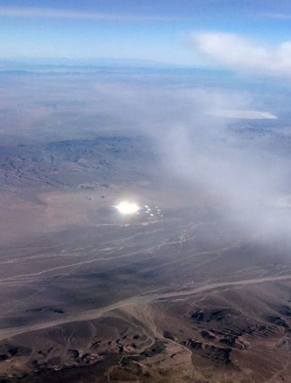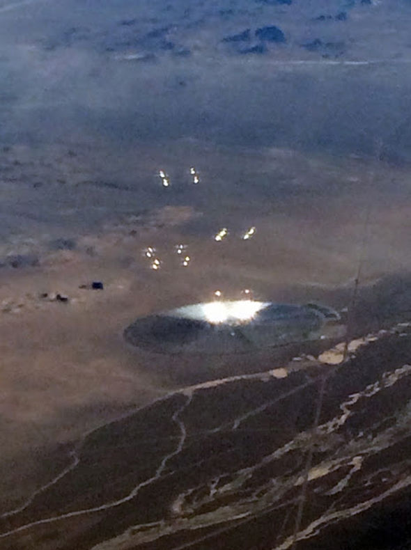 Один из пассажиров рейса авиакомпании American Airlines, следовавшего из Сан-Хосе (Калифорния) в Хьюстон (Техас), запечатлел загадочные огни и некий гигантский диск на земле в районе сверхсекретной "Зоны 51", которая расположена на юге штата Невада, пишет британская газета "Daily Express".