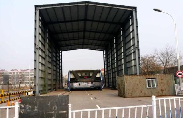 Восьмиметровый автобус должен был ездить по направляющим, а легковые автомобили - свободно проезжать под ним. За счет 32-метровой длины "транспорт будущего" вмещал бы до 1 200 человек.