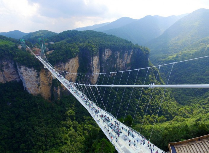 На церемонию открытия собралась огромная толпа. Несколько тысяч человек пришли, чтобы первыми ступить на прозрачную конструкцию, несмотря на довольно дорогой входной билет (138 юаней или около 20 долларов). Прежде чем пустить людей на мост, организаторы продемонстрировали прочность стеклянных панелей ударами кувалды.