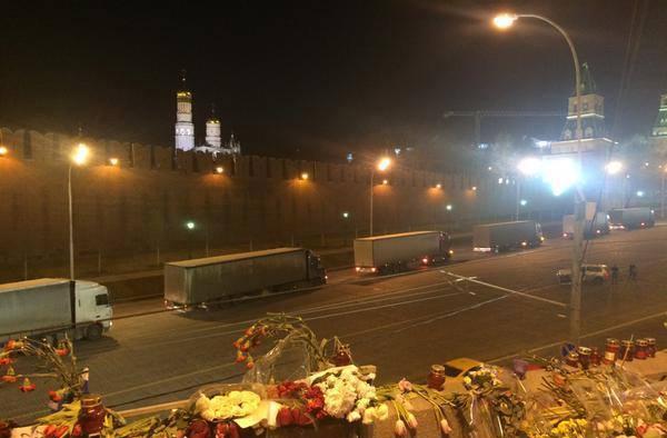 В социальных сетях и средствах массовой информации накануне активно обсуждалось появление колонны белых грузовиков возле стен Кремля. Фуры, напоминающие те, которыми россияне возят гуманитарный конвой в Донбасс, съехались к зданию в центре Москвы вечером 13 марта, сообщают "Подробности".