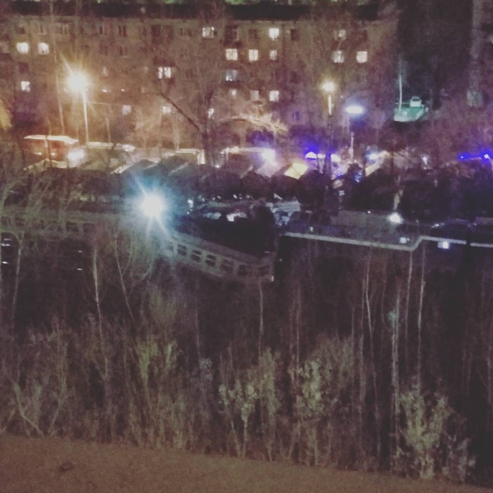 Как говорят очевидцы, от столкновения электрички и поезда вагон электропоезда оказался разорван пополам. Половина его одним краем осталась лежать на рельсах, а другая попала в овраг.