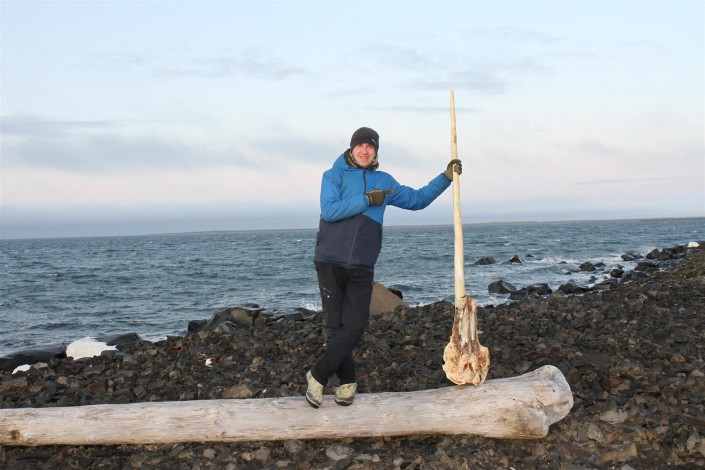 "Мы совершали рейд к мысу Стрелка, вдоль береговой линии острова Земля Александры, где и обнаружили череп нарвала (арктического единорога) в идеальном состоянии. Очень бережно мы транспортировали находку на базу", - рассказала специалист отдела экологического просвещения и туризма нацпарка Дарья Антуфьева.